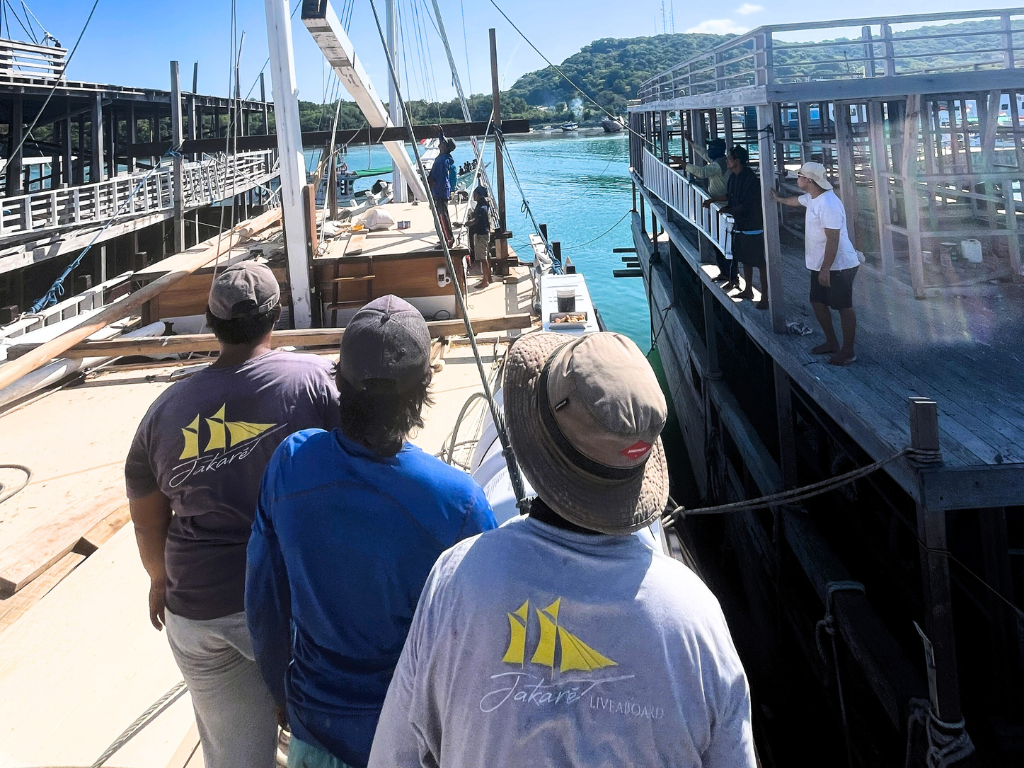 Blog A Conversation with François: Behind the Scenes of Jakare’s Renovation in Bira This September, the Jakare returned to Bira, in South Sulawesi, for nearly three weeks of intense maintenance. In the very place where she was originally built by Bugis master boatbuilders—guardians of a centuries-old tradition—the Jakare went back to her roots. To better understand the improvements, we sat down with François, the passionate owner of the vessel. Read More Where to See Whale Sharks in Indonesia: Best Destinations and Traditions I never imagined that admiring such creatures could move me so deeply. I have always been touched by the grace and strength of marine animals, whatever their kind. But the whale shark brings a special kind of emotion, comparable to the feeling one gets when watching a child lost in their imaginary world. Read More Jakare cruise director’s Top 5 Dive Sites to Explore in Komodo Every cruise aboard Jakare is a journey into one of the most breathtaking marine regions on Earth. Read More Voices of the Sea: Stories from Jakare’s Indonesian Crew As world leaders and policymakers gather in Nice, France for the United Nations Ocean Conference, aiming to protect and sustainably use our oceans and marine resources, aboard the Jakare we wish to give voice to those who live with the sea every single day. Read More Sailing with Purpose: Honoring Sea Turtles and the Ocean Way of Life Snorkel with turtles in Raja Ampat, Komodo & Togean. Join Jakare’s eco cruise and discover Indonesia’s best marine encounters. Read More Earth Month Reflections: The Ocean Is Talking—Are We Listening? What We See, What We Know, and What We Choose Wow, wow, wow as the amazing Cruise Director Audrey says! This trip on Jakare was possibly one of the most amazing trips of my life at 55! Read More Celebrating Women in Leadership: Audrey, Our Inspiring Cruise Director Read More Sailing Safely Aboard Jakare Explore the sea safely with Jakare’s safety measures. Our crew is trained in fire prevention, emergency response, and dive health precautions, ensuring your journey is both secure and unforgettable. Your well-being is our top priority. Read More New Year, New Horizons: Exploring Raja Ampat with Jakare Discover Raja Ampat’s breathtaking beauty with Jakare’s itineraries. Read More LOAD MORE